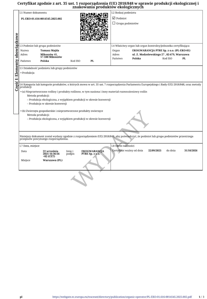 Farming & certification owner: Tomasz Majda